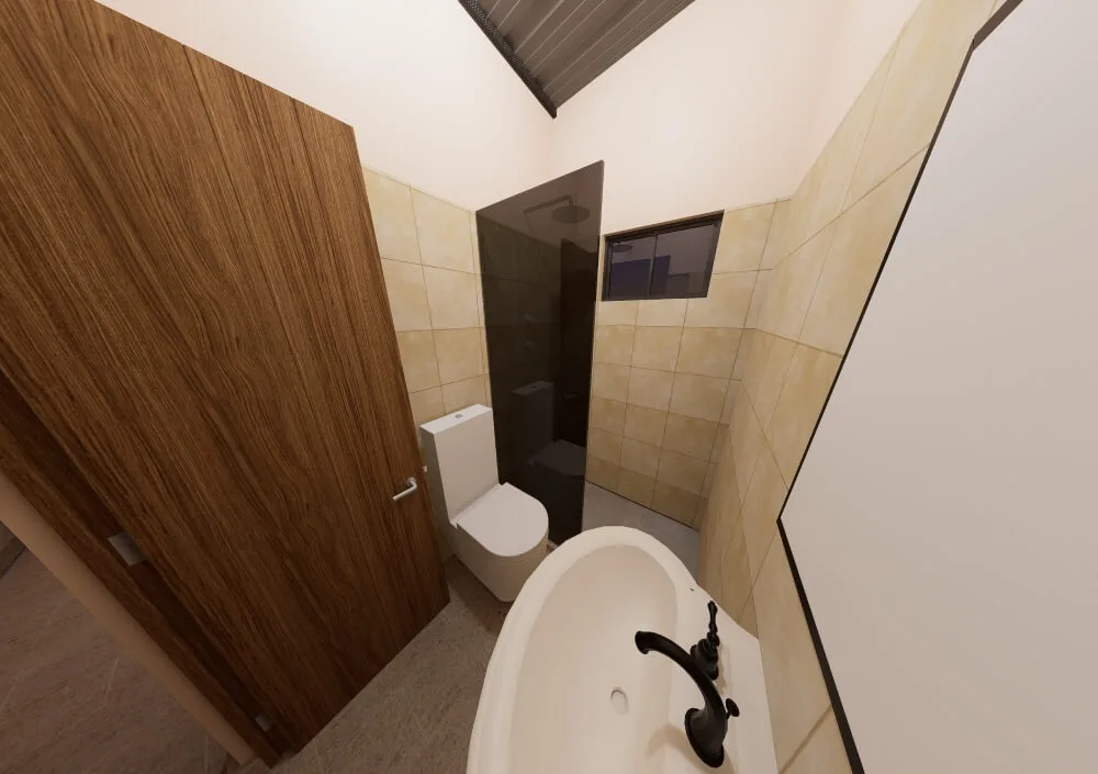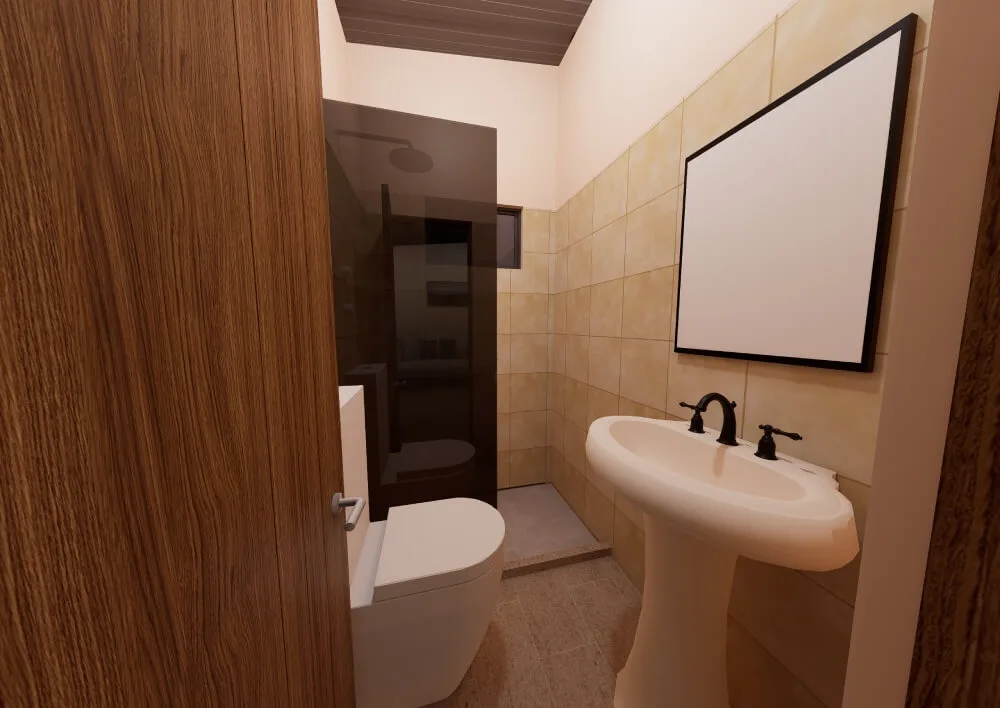 El proyecto se completa con un baño funcional y un área de servicios que facilita las tareas cotidianas, mejorando la organización general de la vivienda.