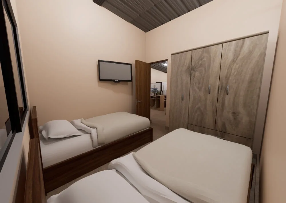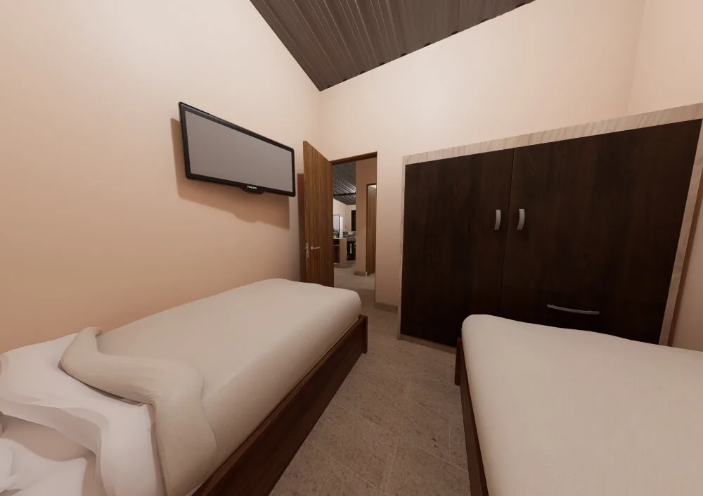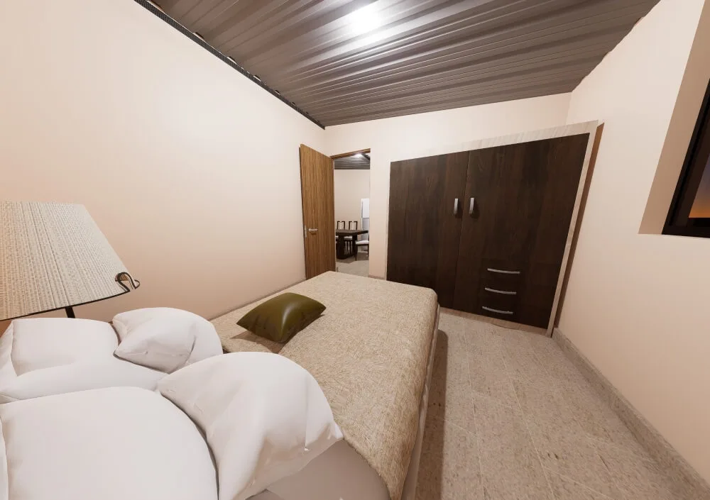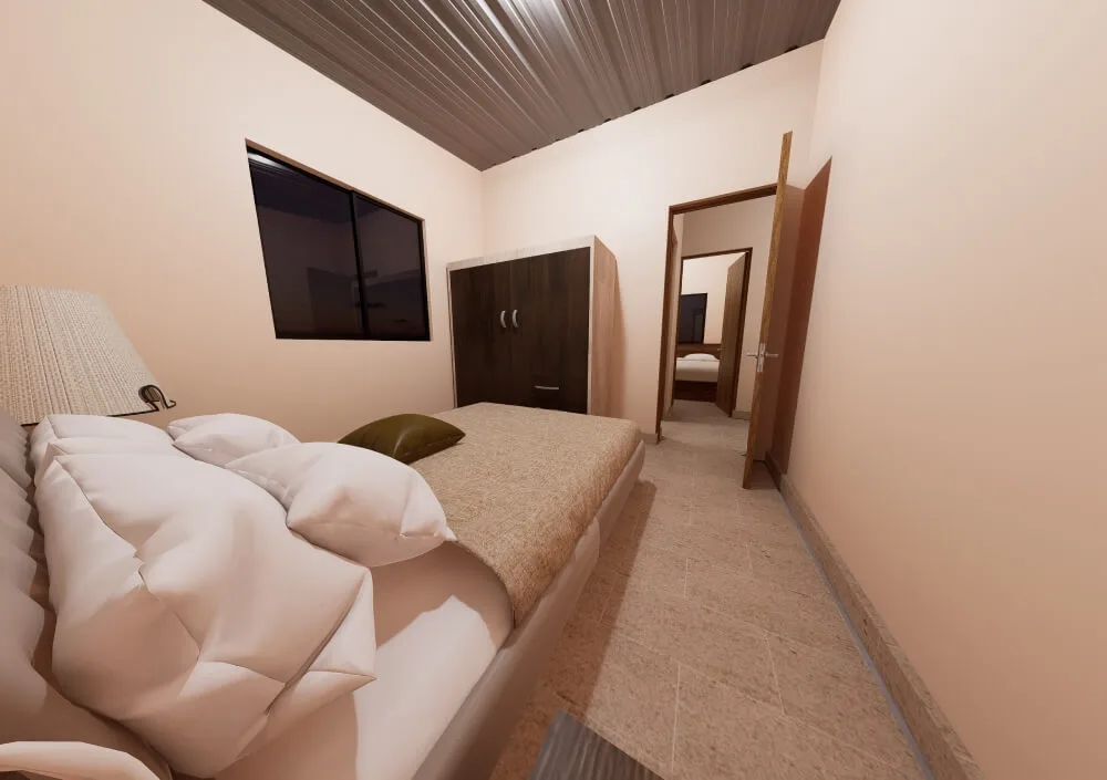 El modelo cuenta con dos dormitorios amplios, diseñados para ofrecer descanso y privacidad, con espacio suficiente para placares, escritorios u otras necesidades del día a día. La distribución incluye también un baño cómodo y bien ubicado, que garantiza funcionalidad y practicidad.